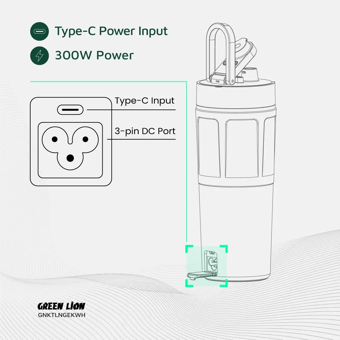 Green Lion Kettle & Go Electric Kettle comes as an incredible option for the progressive kind, with water boiling capacity only at 600 mL. Made of sturdy PP and Stainless Steel 304, the kettle will surely last for a long time. Rating a power of 300W and voltage at 220V~, it manages to boil water in about 7-8 minutes. For power input, a Type-C or 3-pin DC port can be used; and the batting would be 65cm with a UK plug at one end. The kettle incorporates the temperature display and touch control functionality for ease of operation. The Keep Warm Mode and Auto Shut Off add to your safety. The features include Dry Boil Protection and a drip-free spout to ensure the kettle is highly efficient and clean. Food-grade material guarantees safety in use, with 6 presets fortifying its multifunctionality for different heating needs.