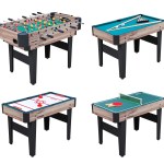 The Porodo Lifestyle Multi-Game Table with Foosball Table, Billiard Table, Hockey Table & Table Tennis is a flexible and fun addition to any home, offering four popular games in one compact design. This multi-game table, which measures 118 x 61.2 x 78.7 cm, has an easy, simple transition system for fast game changes. The Foosball Table has 22 players for exciting matches, a 102 x 58 cm playfield composed of strong 5mm MDF, and12.7mm chromium steel rods. The hockey table comes with two pucks and two strikers and has a 76.4 x 45.4 cm playfield made of 5mm MDF. Enjoy a 94.4 x 50.4 cm MDF table tennis playfield, three balls, a net, and two paddles for competitive play. For a standard billiard game, the Billiard Table comes with a 95.2 x 51.2 cm MDF playfield, two cues, a set of billiard balls, chalks, and a triangle. This multi-game table is perfect for entertaining family and friends. It has a simple setup and fast game transitions.