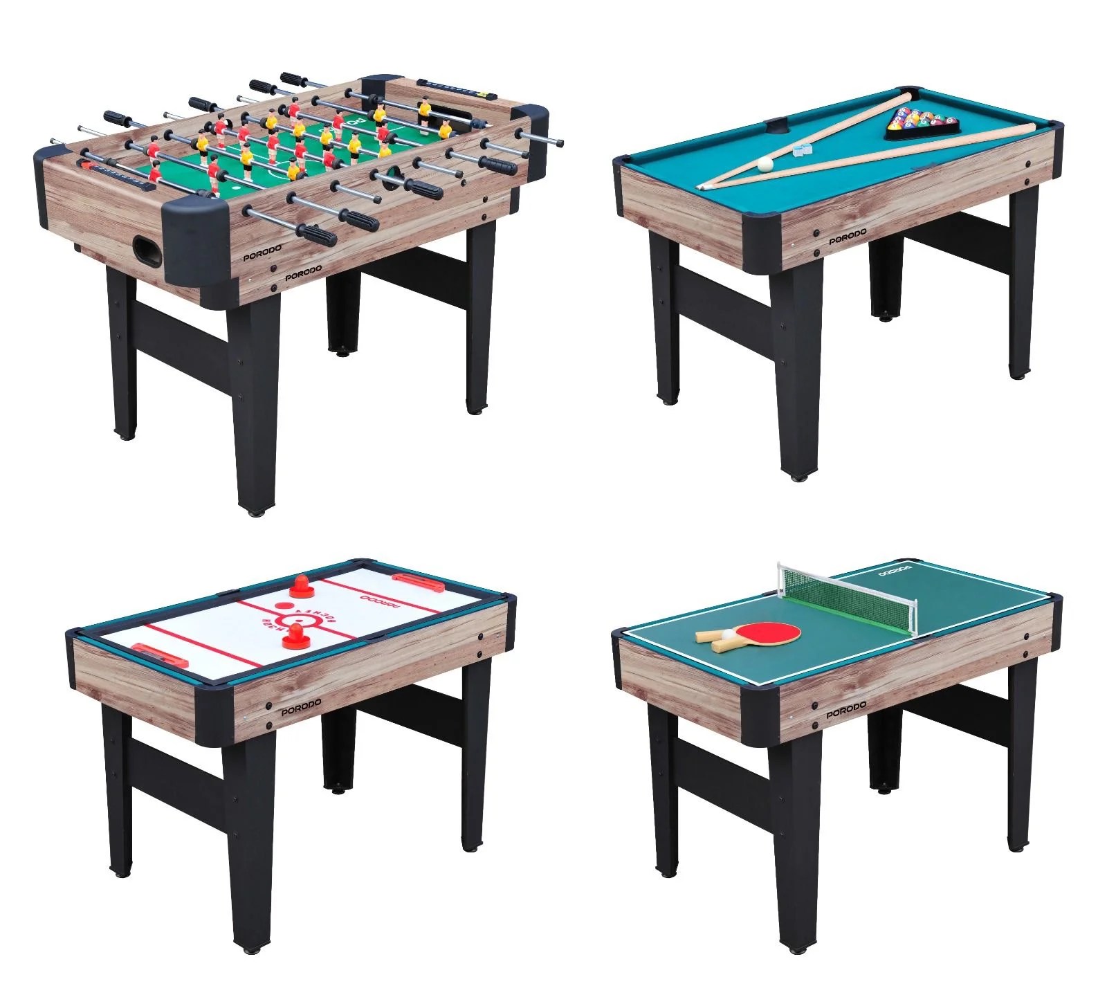 Porodo Lifestyle Multi-Game Table with Foosball Table, Billiard Table, Hockey Table & Table Tennis, Easy Transition, Quick Set-up, Full Package Accessories – Brown
