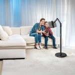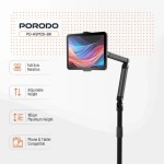 The black Porodo Phone & Tablet Floor Stand blends firmness and adaptability for simple gadget use. It is constructed from aluminum, ABS, and iron and offers a firm and stable base. It is adjustable from 45cm to 1.65m high, which suits various viewing positions for comfort. The stand offers universal compatibility, accommodating devices from 5.5” smartphones to 12.9” tablets. Full axis rotation allows simple switching from portrait to landscape orientation. Ideal for home, office, or studio applications, this stand facilitates hands-free use of the device for video conferencing, reading, or entertainment, with flexibility and stability in a clean, modern design.