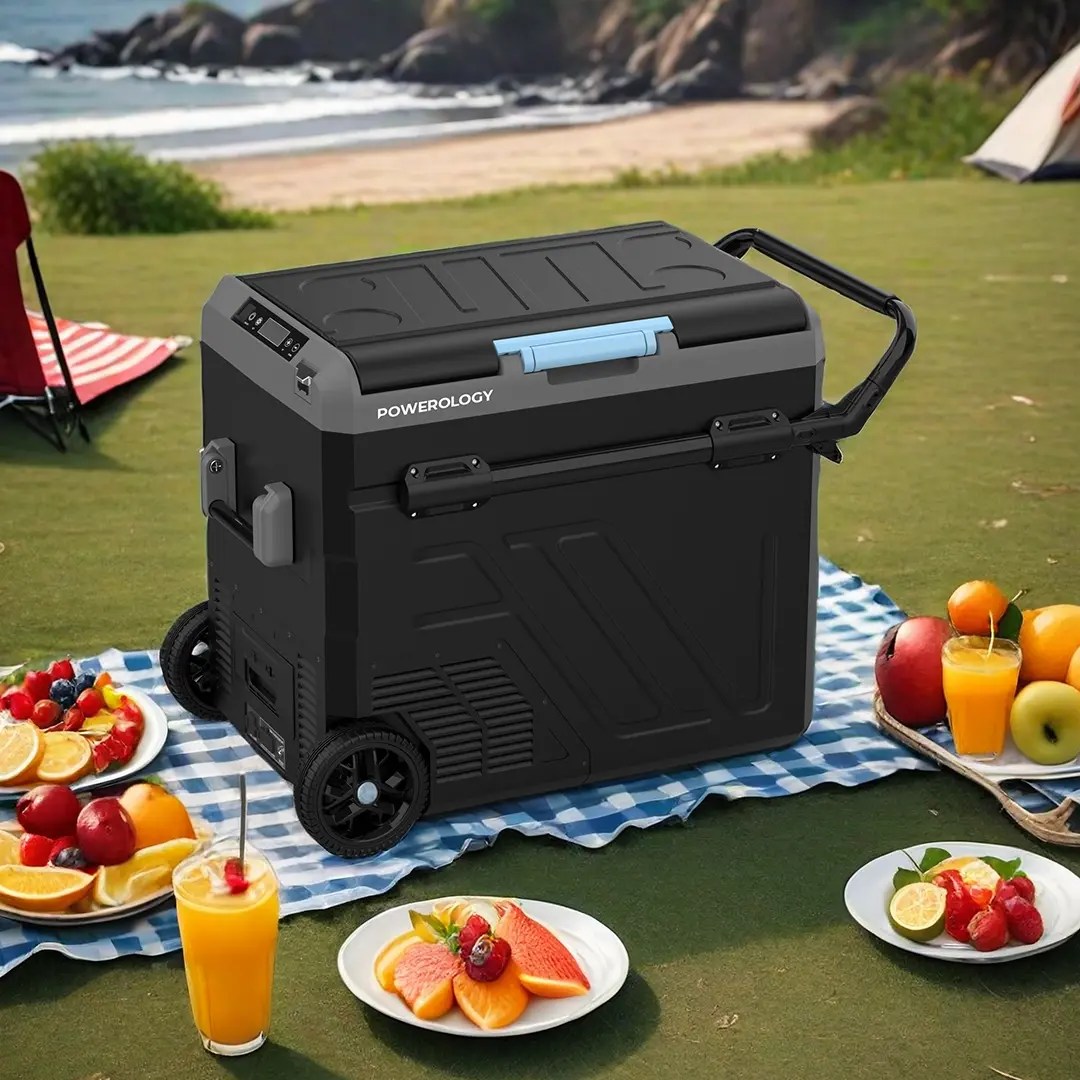 Take your on-the-go cooling to the next level with the Powerology Dual Compartment Smart Fridge and Freezer, a cutting-edge solution designed for portability and performance. Equipped with a more robust 20800mAh battery capacity and PD 60W charging, this 60L unit combines convenience and versatility. The dual-zone cooling feature enables independent temperature control, from -20°C to +20°C, which is ideal for keeping frozen items fresh while also chilling beverages. It has a high-efficiency compressor that provides consistent cooling with minimal energy consumption. Compatible with both AC (100-240V) and DC (12V/24V) power supplies, it will serve its purpose well on road trips and outdoor escapades. With integrated Type-C and USB outputs, fast charging of your gadgets is an added feature, as is the retractable pull bar and durable wheels to enhance portability. Equipped with the R134A environment-friendly refrigerant and multi-climate support, it becomes a trustworthy partner for any trip. Reason to Buy: Reliable, versatile, and designed with modern lifestyles in mind.