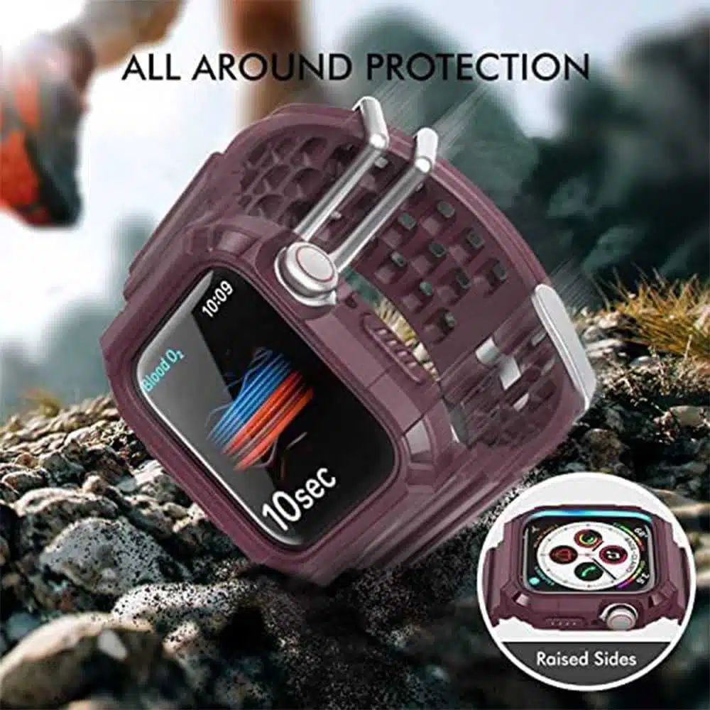 AhaStyle Matte TPU Apple Watch Band with Rugged Bumper Case 38 / 40mm – Burgundy