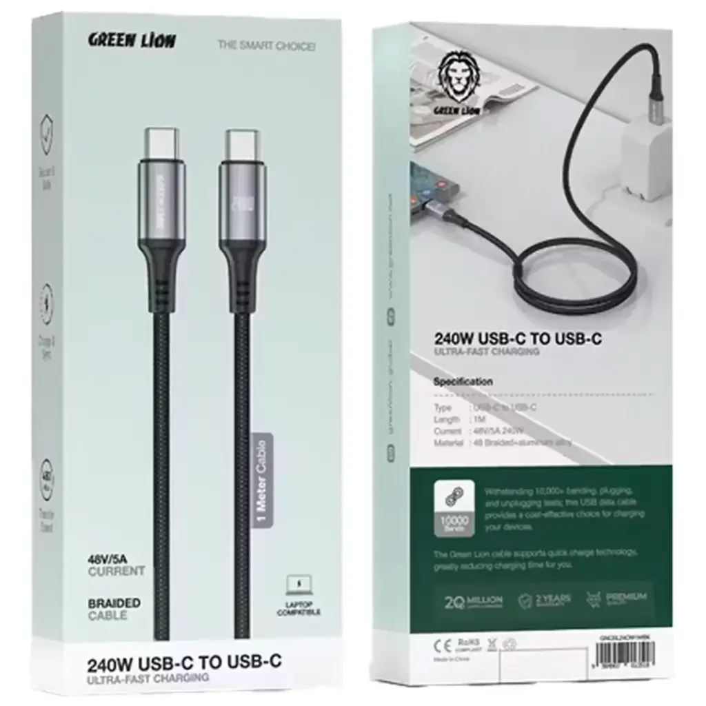 Green Lion 240W USB-C to USB-C Ultra Fast Charging 1m Braided Cable – Black