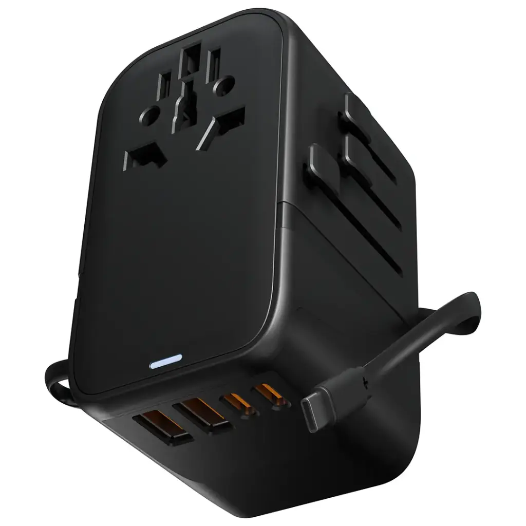 The Green Lion Companion 45 Universal Travel Adapter in black is a great solution for charging your devices during travel all over the world. Plugged with different types of plugs (UK, US, EU, AUS), it’s able to connect with universal AC sockets, which means you can charge your devices in almost every country. This adapter is rated at 2400W power and 10A maximum current, which delivers safe and efficient power for different types of electronics. USB-C and USB-A outputs support fast charging, PD45W and QC18W included, therefore it is perfect for smartphones, laptops, etc. Its retractable 50cm cable makes sure that it is packed away neatly and easy to carry along, while flame-retardant PC and copper materials promise durability and safety. You can charge up to 6 devices at the same time thanks to the 3 USB-C ports and 2 USB-A ports. The Green Lion Companion 45 is your power source wherever you are, at home, at the office, or on the road.