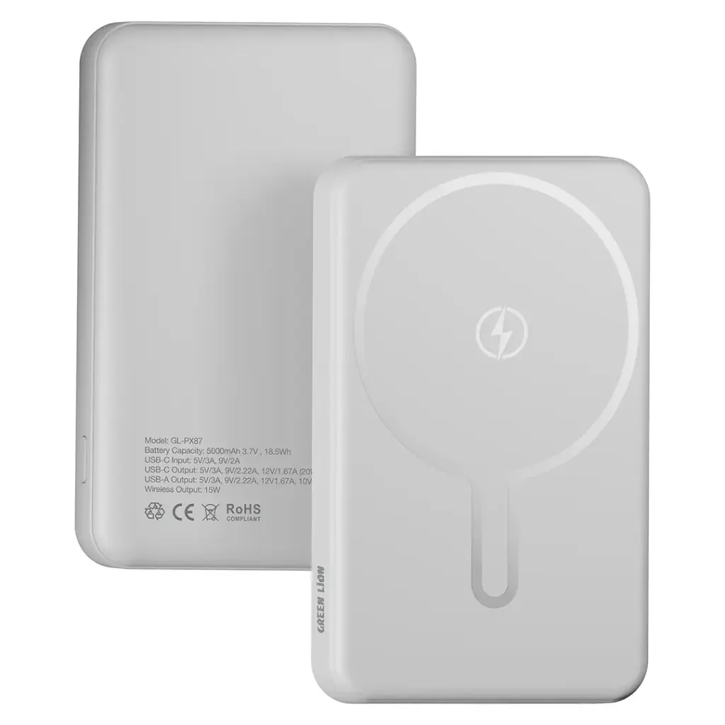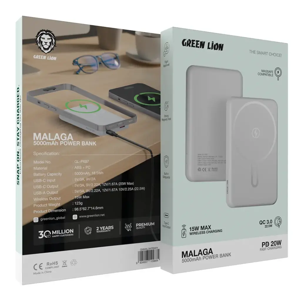 The Green Lion Malaga Power Bank is a device that merges functionality and style, while providing fast charging on the go. This small power bank with PD 20W and Quick Charge 3.0 is very effective in charging your devices quickly, so that you are still powered all the time. Moreover, it has 15W of wireless charging for devices that support it, giving the convenience of a MagSafe-compatible charging pad. The built-in LED indicator is there to show you the remaining charge, while USB-C and USB-A outputs guarantee compatibility with different devices. The power bank, made of ABS, is an ideal blend of durability and portability; hence, it is suitable for traveling, working, and everyday usage. Its 5000mAh and 10000mAh capacity make it small enough to be packed in your bag and at the same time capable of charging your devices. Highly strong in times of need.