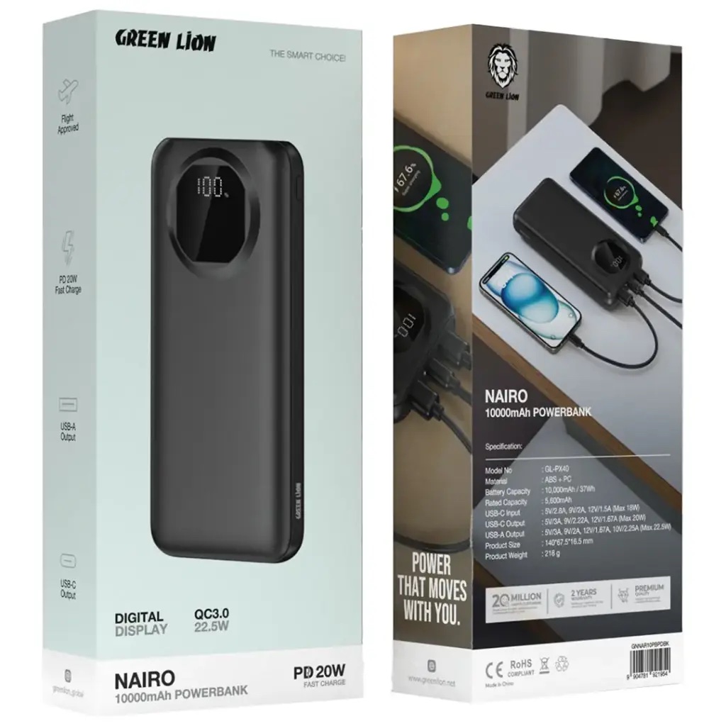 Green Lion Nairo 10000mAh Power Bank PD 20W – Black