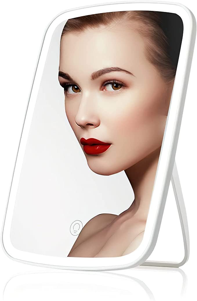 Jordan & Judy Makeup Mirror with 3 Color Lights, White Rectangle Beauty Led Mirro, Vanity Touch Screen Lit Up High Definition Cosmeticd Mirror, Adjustable Portable USB Rechargeable