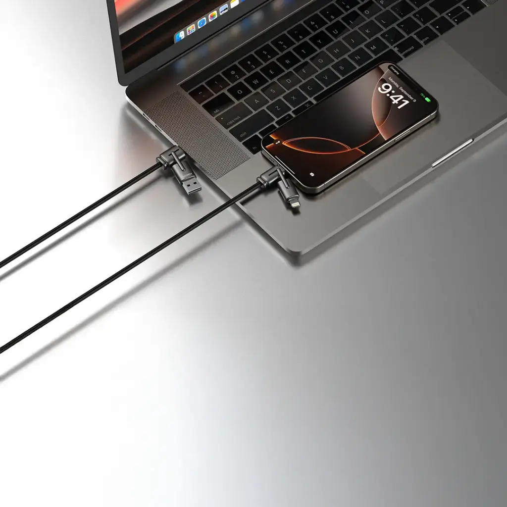 The Porodo 4-in-1 Charging and Data Transfer Cable functions as a complete charging and data transfer solution, which provides users with high-speed charging capabilities. The cable supports three connection types, which include USB, USB-C, and Lightning, making it an ideal choice for users who own multiple devices. The 15W USB-A to USB-C and 27W USB-C to Lightning output of the cable allows users to charge their phones, tablets, and other USB-powered devices at high speeds because it supports fast charging. The 480Mbps data transfer speed allows quick syncing of files, which makes it suitable for both personal and professional use. The 1.2m cable provides tangle-free operation because it extends enough distance for users to charge their devices without creating messy wires. The combination of zinc alloy and silicon materials creates a product that delivers both durability and strength, while the design of the product architecturally blends into all environments. This multi-functional cable enables users to handle their charging and data requirements in a simple way.