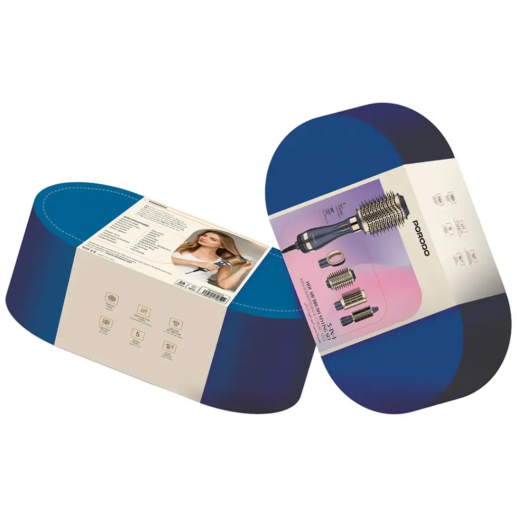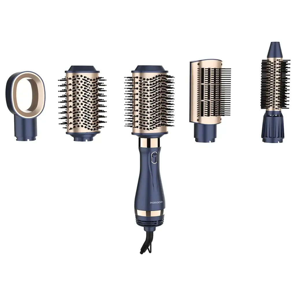 Porodo 5-In-1 Hot Air Brush Styling Set with Straightening & Curling Tool - Blue & Gold