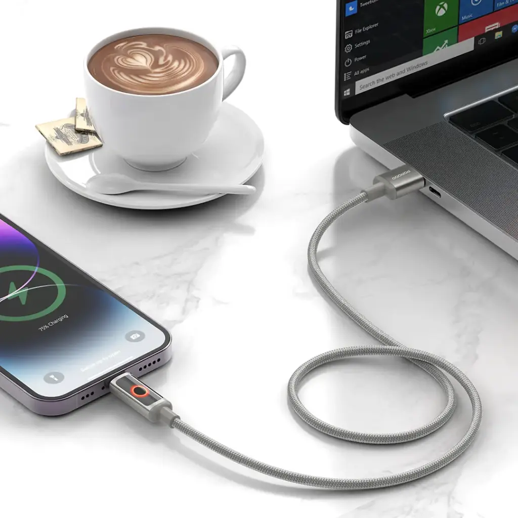 The Porodo Charge Lite USB-A to Lightning Cable is definitely the answer to all charging and data transfer problems. It is made from a super-strong and stylish braided aluminum alloy that gives it a long life and makes it easy to untangle. It is 1 meter long, which is the perfect length for desktop use as well as for your car charging. A high-powered 5A and 480 Mbps of data transfer speed guarantee that the devices are fast-charged and have seamless data transfer. An LED indicator lets you know when to unplug the device, while an automatic power-off function takes care of battery protection. The Porodo Charge Lite Cable is characterized by speed and reliability. It concentrates on power management and device protection. Moreover, it is tough enough to stand the test of daily use. The Cable is the right one that can keep your devices up and running and always ready for the next action.