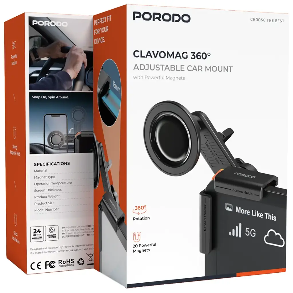 Porodo Clavomag 360° Adjustable Car Mount with Powerful Magnets – Black