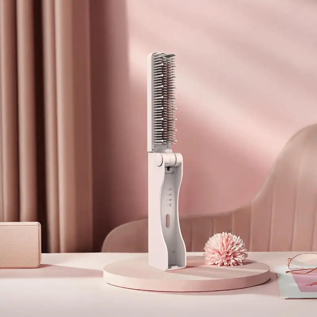 Porodo Foldable Mini Straightener Brush – Pink
