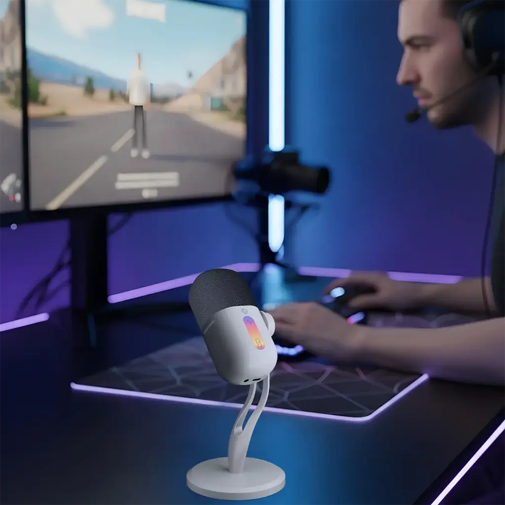 The Porodo Gaming Elyx RGB Condenser Microphone is an absolutely fantastic instrument for gamers, streamers, and content creators who want to have top-notch audio quality. Thanks to its frequency response range of 50Hz – 18KHz and a microphone sensitivity of -33dB, it guarantees clear and precise sound capture, which is suitable for both voice chat and recording. The microphone incorporates a noise suppress button, which, besides being an excellent feature for the microphone itself, is also good for the user, as it gives out a very clear recording that sounds professional. The RGB light is not only functional, but it also gives a dynamic and customizable look to your setup, making it stylish as well as practical. Plug & play is the way the microphone is designed, and it works without any hassle with Windows, MacOS, Android, and iOS devices with USB-C charging for easy and quick connectivity. The adjustable angle is there to allow you to find the perfect positioning for sound capture at its best, while the mute button is there for quick control during live sessions. The Elyx mic has a high sampling rate and 60mA current, so it is always a mix of reliable performance every time.