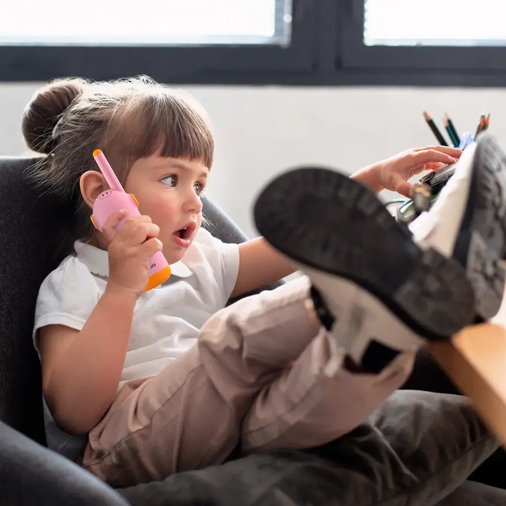 Porodo Kids Dual LCD Walkie Talkies are a great way for kids to communicate with each other, as they have a 3 km talk range that provides dependable communication over long distances. Besides, the LCD screen makes the operation of the sets very clear by showing the channel number and the battery life; thus, young users are not getting confused. So, they are guaranteed an 8-hour runtime for their constant adventures without being concerned about power running out. The walkie-talkies have a flashlight for extra help, a keypad child lock to secure safety; therefore, they are perfect for the outdoors. Not only do they have 8 channels and 10 call tones, but they also provide communication that is both entertaining and personalized. The USB-C charging allows a fast and efficient charge, and on the other hand, the 400mAh battery is the one that provides extended usage. Whether it’s family trips, hiking, or outdoor play, these walkie-talkies keep your kids connected and entertained.