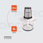 Porodo Lifestyle Meat and Vegetable Electric Food Chopper is a very handy, easy-to-use appliance that saves time in preparing your food. This product is equipped with a 400W Pure copper motor-powered, which ensures that chopping, mincing, and blending functions are done quickly and consistently. Powered up to 3L in capacity with Settings of 0–2 speeds, it is suitable for all ingredients: meats and vegetables. High-performance blades offer the perfect cut and tool attachment for versatility. The nonslip bottom provides you balance while using it, and a UK 3-pin plug for universal compatibility. This food chopper combines durability and performance with ease of use and is a must-have product in every modern kitchen.