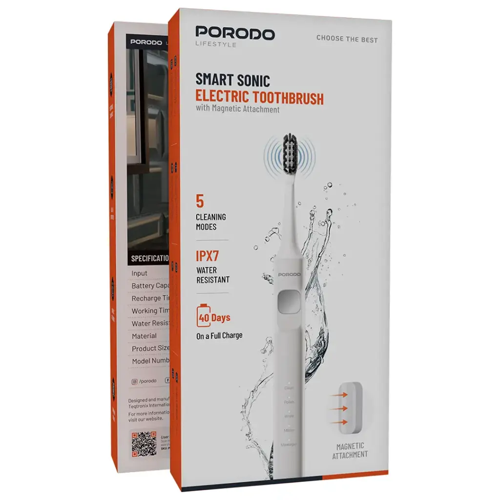 Porodo Lifestyle Smart Sonic Electric Toothbrush with Magnetic Attachment – White
