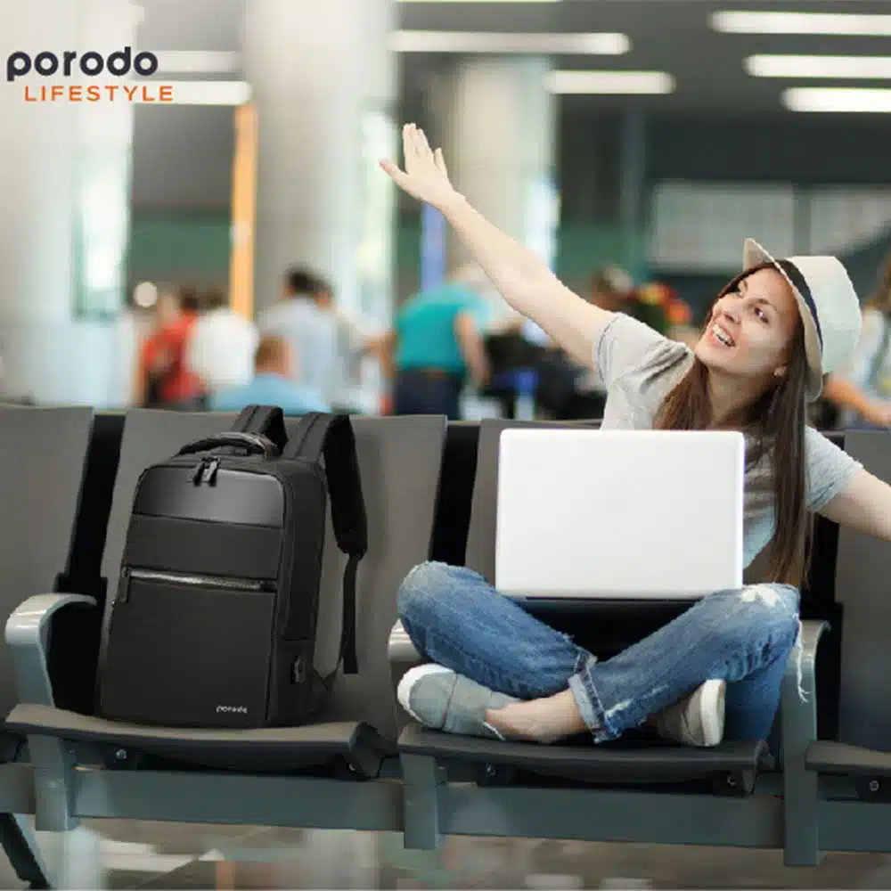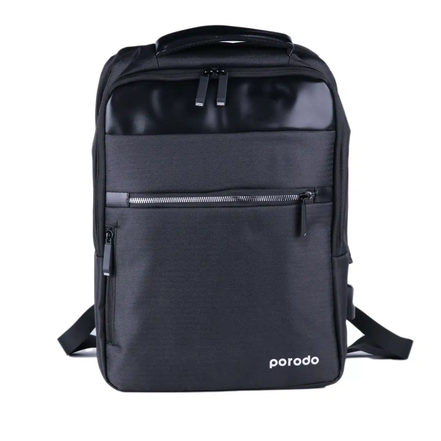 Porodo Lifestyle Water-Proof Oxford + PU Backpack USB-A Port – Black
