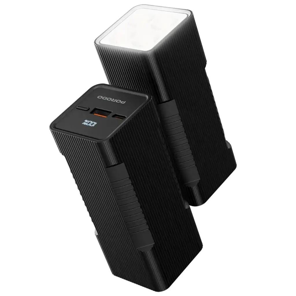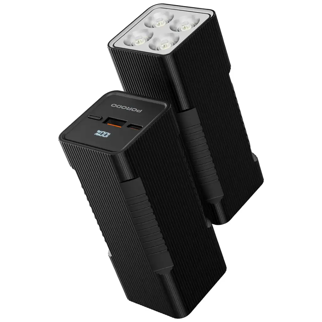 Porodo Lumera 10000mAh Power Bank with Built-In Flashlight – Black