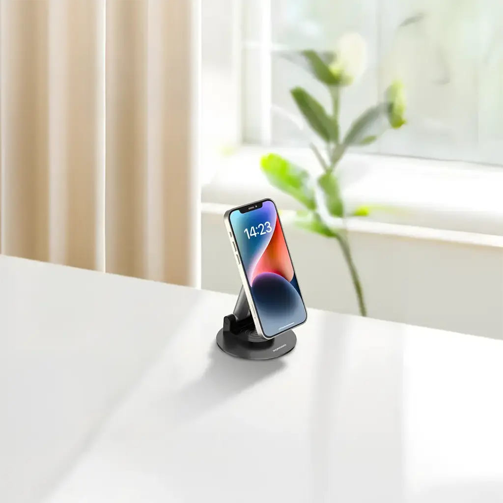 Being crafted from pure materials, the Porodo Magnetic Phone Holder with Adjustable Telescopic Rod exemplifies strength, flexibility, and convenience for everyday use. Made of strong PS and silicone materials, it can hold your phone securely up to 350g. With powerful N52 magnets, it is sure to hold your device firmly in place whilst you are working, streaming, or just browsing. The telescopic rod has an adjustable height to provide you with comfort in ergonomic viewing. It rotates in all directions, allowing you to freely switch between portrait and landscape modes for video calls, watching content, or following recipes- all the more to use hands-free. When collapsed, it folds to a smaller point for easy carrying or good storage, which is ideal for both home and office setups. The Porodo phone holder was made for one-hand use, so convenience meets utility to deliver a superior experience with the utmost ease.