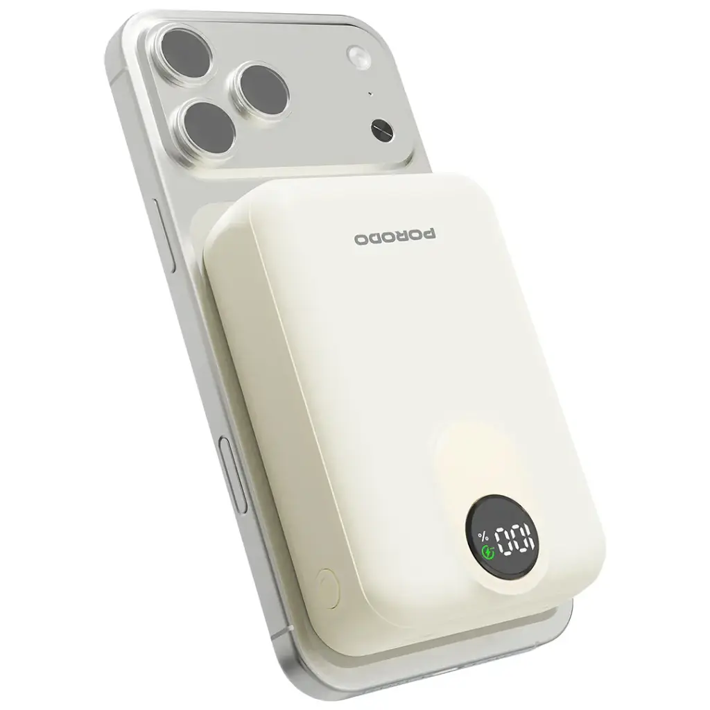 The Porodo Magnex 20000mAh MagSafe Power Bank with USB-C & Lightning Port provides users with maximum power and charging flexibility through its small form factor. The product enables fast and dependable charging for iPhones and other devices through its MagSafe compatibility feature. The device provides a 20000mAh battery capacity, which enables users to charge their devices multiple times during their travels. The USB-C output enables 20W PD fast charging, while the Lightning output supports 18W QC quick power delivery. The device supports multiple charging methods through its USB-C and Lightning inputs, which allow users to recharge the battery. The product features an advanced design that combines premium ABS with zinc alloy materials to create a stylish yet durable product. The LED power indicators display battery information, which allows users to prepare their devices for upcoming tasks. The power bank provides fast charging capabilities, which work with all devices, making it an essential tool for daily activities, whether users are at home or traveling.