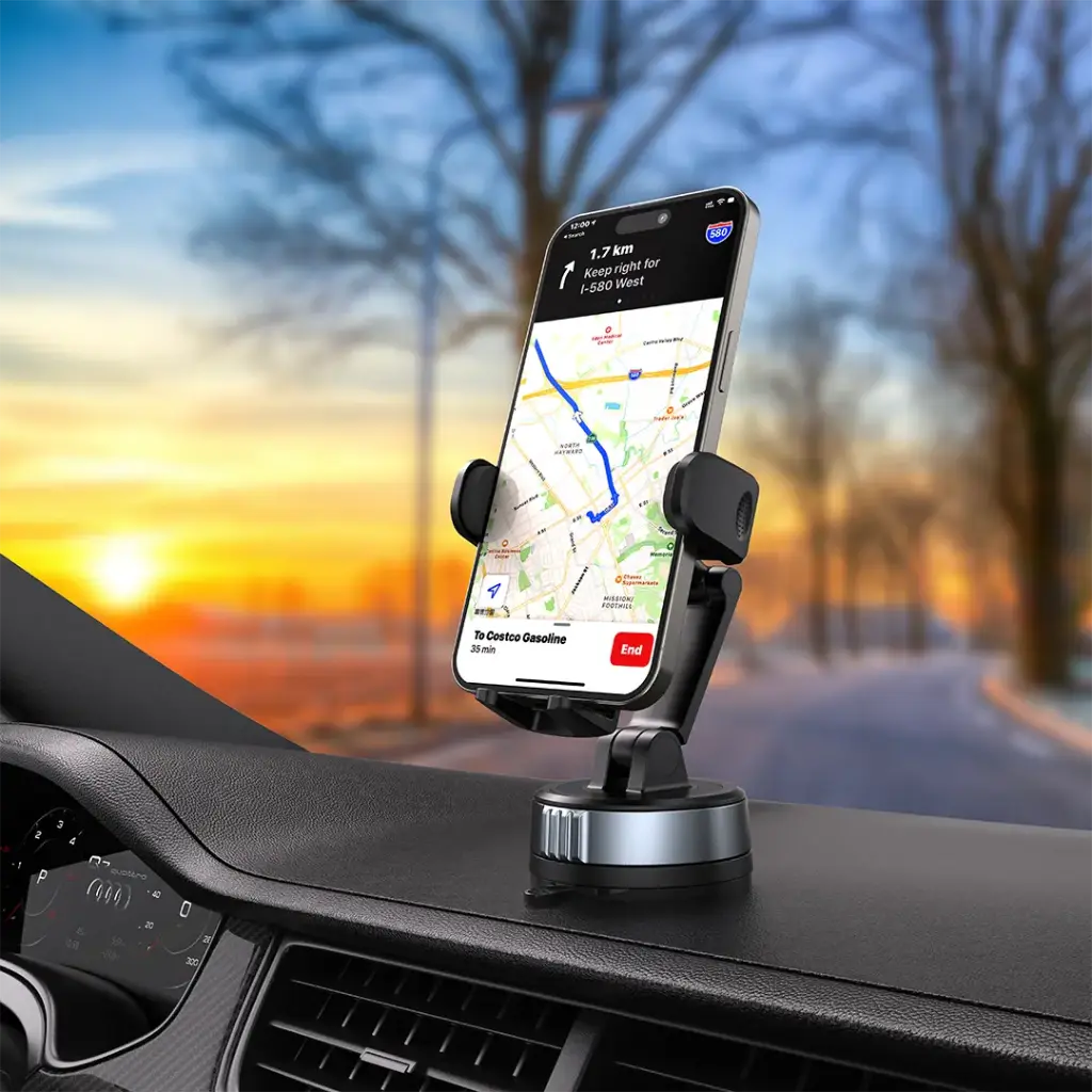 The Porodo Robson Cradle Suction Phone Holder – Black provides users with a straightforward method to securely affix their device. The product features a powerful suction base that enables it to create secure bonds with various surfaces while maintaining its grip during rough vehicle operation. The one-click locking mechanism of the device enables users to mount or dismount their phone with complete ease. Users can adjust their viewing angle through the adjustable viewing angle, which enables them to find their preferred viewing angle, while the 360° rotation function provides complete viewing angle control for both portrait and landscape display formats. The silicone clamp supports devices with widths between 52 mm and 90mm, making it suitable for different smartphone sizes. The product enables drivers to operate their vehicle without using their hands because of its lightweight design and simple control system. The Robson Cradle Suction Phone Holder offers users safe and easy-to-use functionality, whether installed on their car’s dashboard or window.