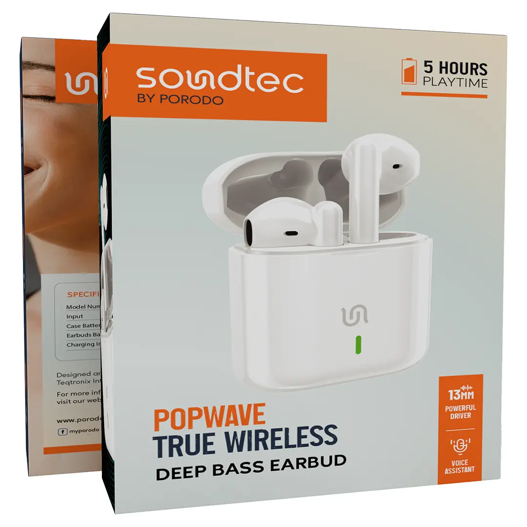 Porodo Soundtec Popwave True Wireless Deep Bass Earbuds – White