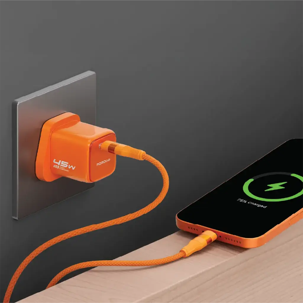 The Porodo Tezorenzza USB-C Wall Adaptor offers powerful and fast charging with its 45W Max output, providing quick power to your devices. The system uses GaN technology to provide universal device compatibility, which works with smartphones, tablets, and all devices that charge through USB. The product combines compact design with anti-flame PC material to deliver both safety features and easy-to-carry capabilities. The USB-C port delivers fast charging with multiple voltage options, including 5V/3A, 9V/3A, and 20V/2.25A. The system uses PPS output to deliver power distribution efficiently and securely. The UK plug design provides fast charging capabilities for travelers who need reliable charging at any location. The Porodo Tezorenzza USB-C Wall Adaptor functions as a dependable charging solution that delivers high-speed power for all common devices.