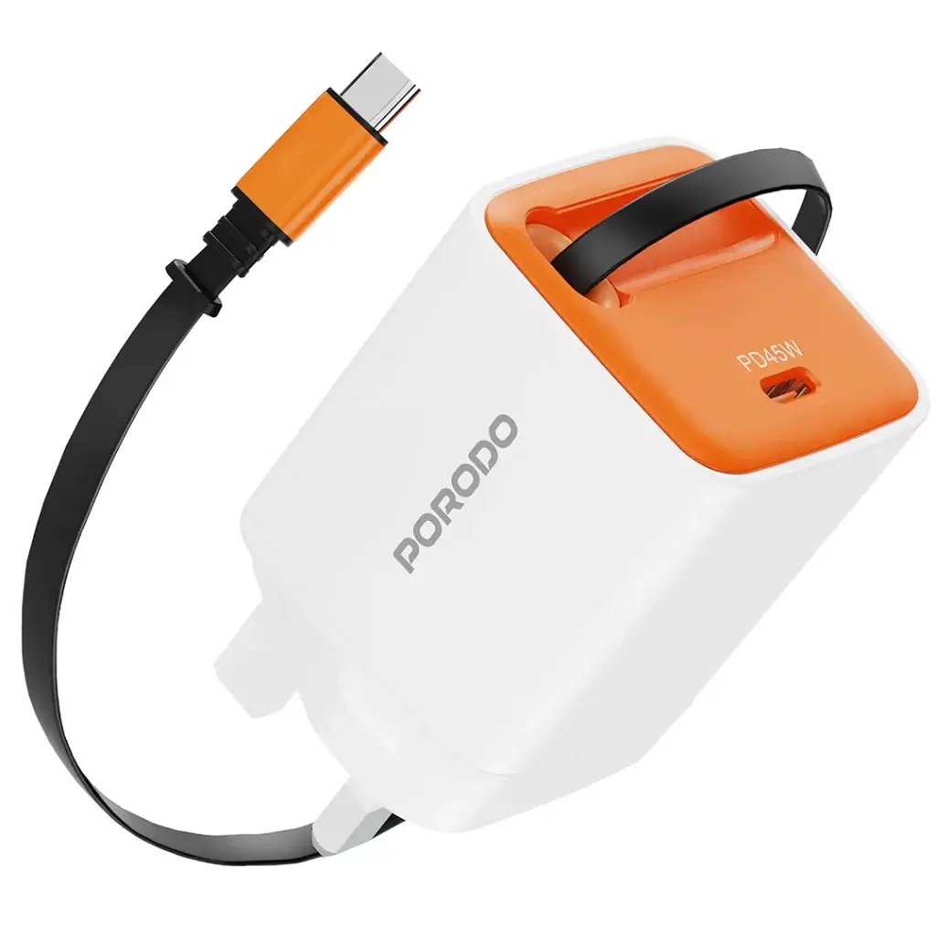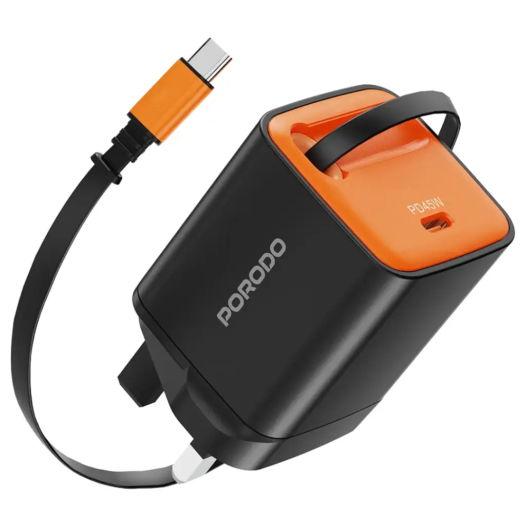 Porodo Tezpatro 45W GaN Charger with USB-C Retractable Cable