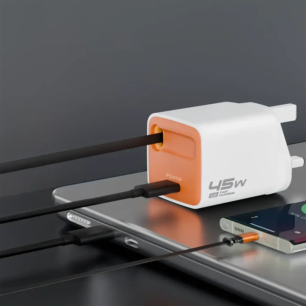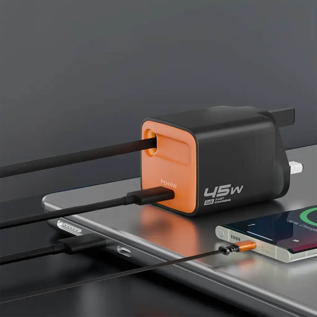 The Porodo Tezpatro 45W GaN Charger with USB-C Retractable Cable integrates cutting-edge power delivery technology, with the comforts of use and trustworthiness. This charger, made from fire-proof PC material, is a reliable source of power that is capable of fast charging through USB-C PD 45W. The charger has an array of outputs with outputs of 5V/3A, 9V/3A, 12V/3A, and 20V/2.25A, thus giving fast charging from many device types. It also features a maximum power sharing output of 17W with PPS for the best light to charge multiple devices at the same time pretty efficiently. The 80cm USB-C retractable cable contributes to the flexibility of the device, since you can store it easily, and at the same time, it will not add to the mess caused by other cables. The flame-retardant housing guarantees safety while using the charger, and the GaN technology makes it more efficient by generating less heat and thus being able to charge faster. The Porodo Tezpatro charger is basically for folks who are always mobile; it merges portability, speed, and safety into one, thus giving a complete charging solution for the up-to-date gadgets.