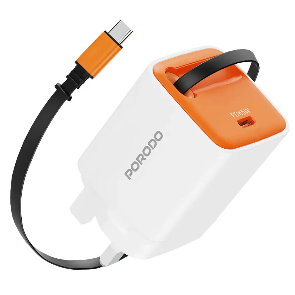 Porodo Tezpatro 65W GaN Charger with USB-C Retractable Cable