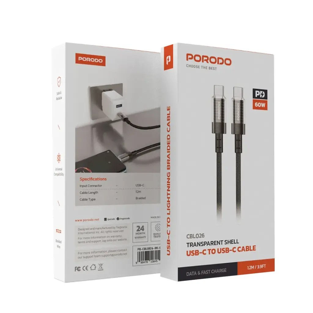 Porodo Transparent Shell USB-C To USB-C Cable – Black