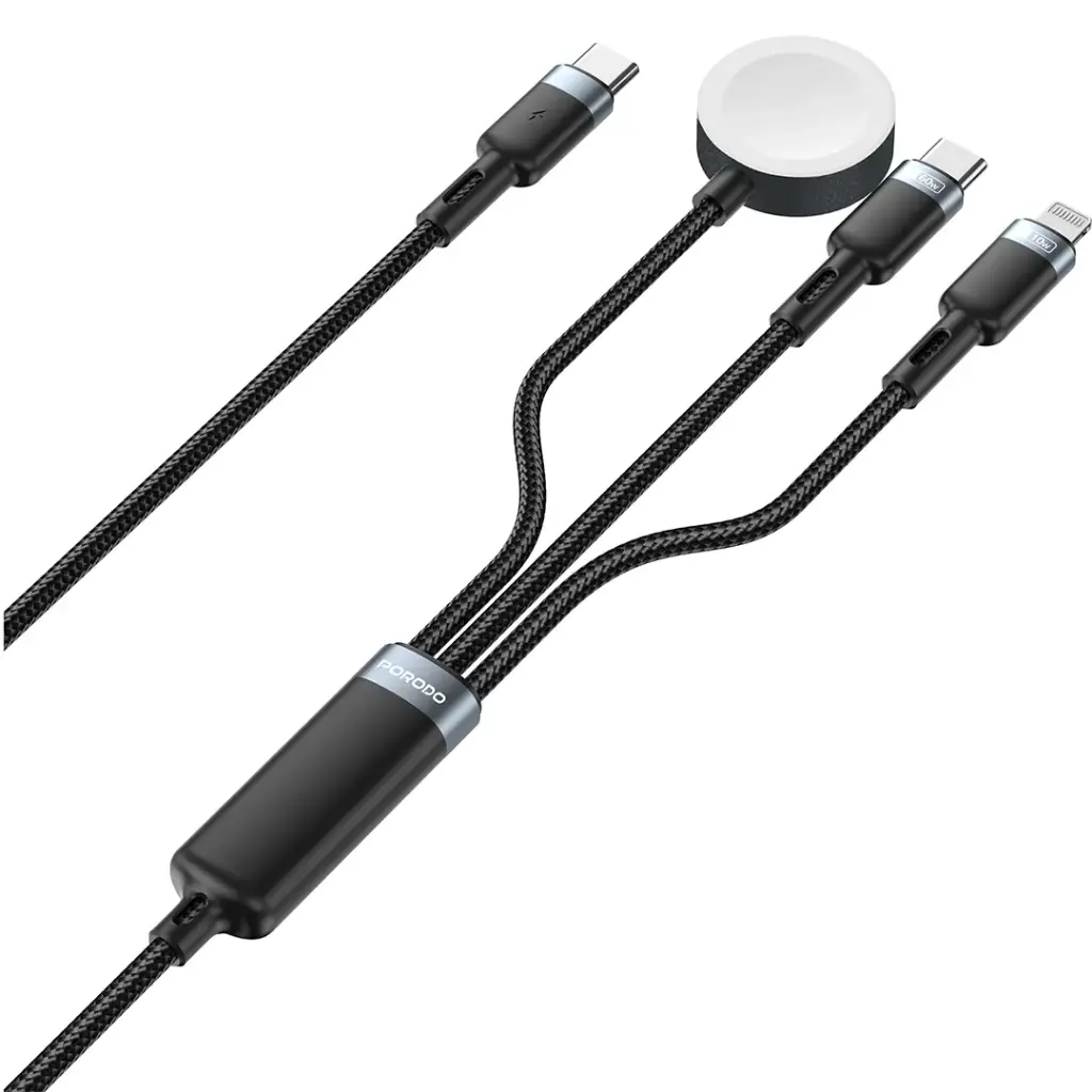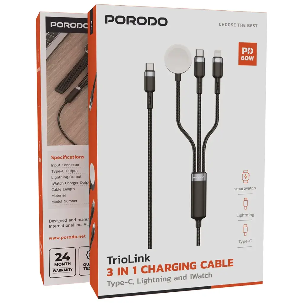 Porodo TrioLink 3-In-1 Charging Cable Type-C, Lightning and iWatch – Black