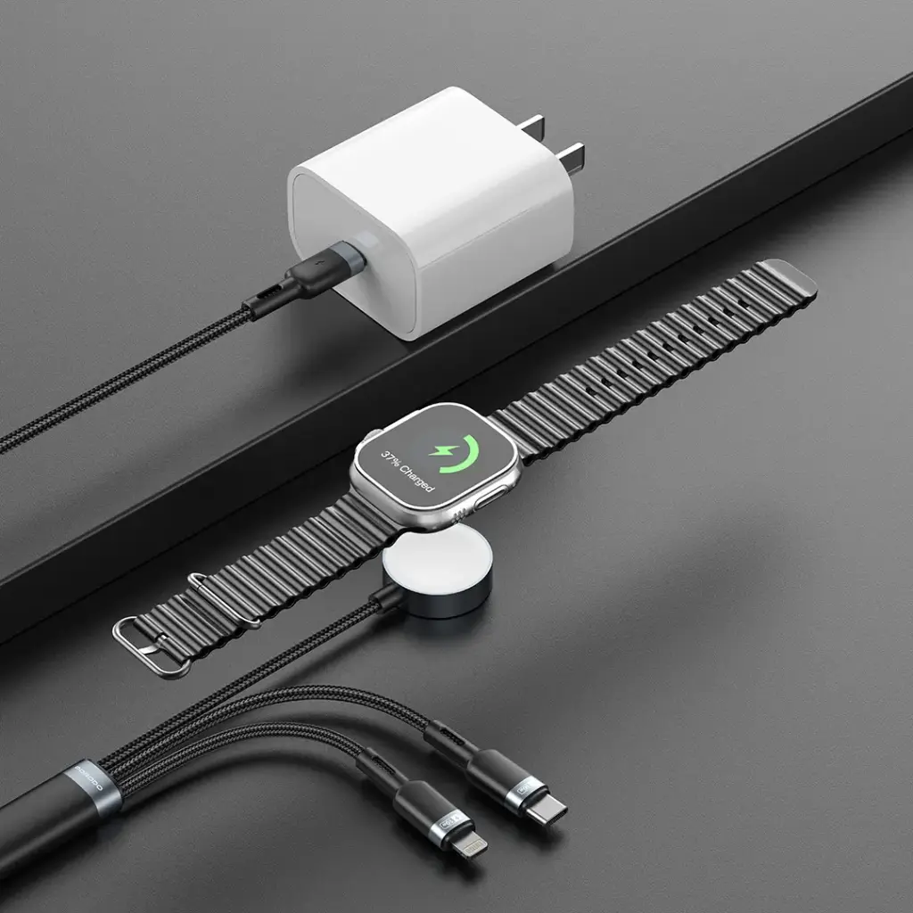 The Porodo TrioLink 3-In-1 Charging Cable offers an all-inclusive choice, depending on how you fit its numerous facets into your ordinary life. The 3-in-1 compatible cable supports Type-C, Lightning, and iWatch devices, so that you can charge several devices using one cable. It fast-charges compatible devices at 60W Type-C output and provides charging for Apple devices at 10W Lightning output and 5W iWatch output. Being completely constructed of aluminum alloy and TPE material, this cable should withstand everyday wear and tear. Its tangle-free design means the cable is stored and used hassle-free, with 1.2m length giving you the freedom to comfortably charge without having to be bound behind a desk. With such fast-charge capabilities, Porodo TrioLink 3-In-1 Charging Cable genuinely can be hailed as a trustworthy, efficient companion for people charging a variety of devices in their lives.