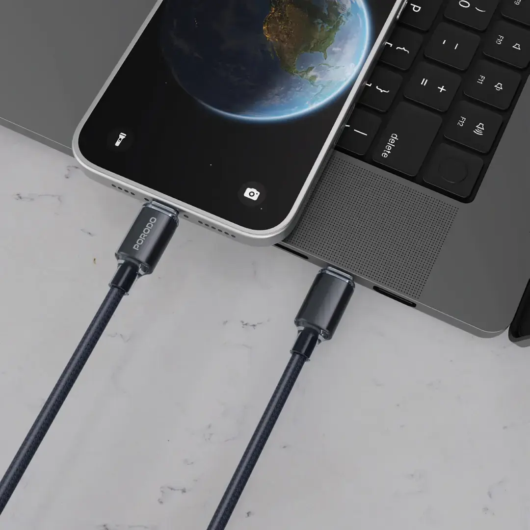The Porodo USB-C to Lightning Braided Cable supports fast charging and efficient data transfer. With a USB-C input connector, it allows for high-speed charging of 27W max output through PD (Power Delivery). The cable charges devices with a USB 2.0 speed of 9V/3A, allowing quicker power up for your devices. It also has fast data sync with a transfer speed of 480Mbps, which would be perfect for file transfer and device sync. The strong and flexible braided design gives it resistance to wear and tear, while the 1-meter length provides good working space in various settings. Charging or data transfer, the Porodo USB-C to Lightning Braided Cable will never let you down with performance and durability when it comes to your devices.