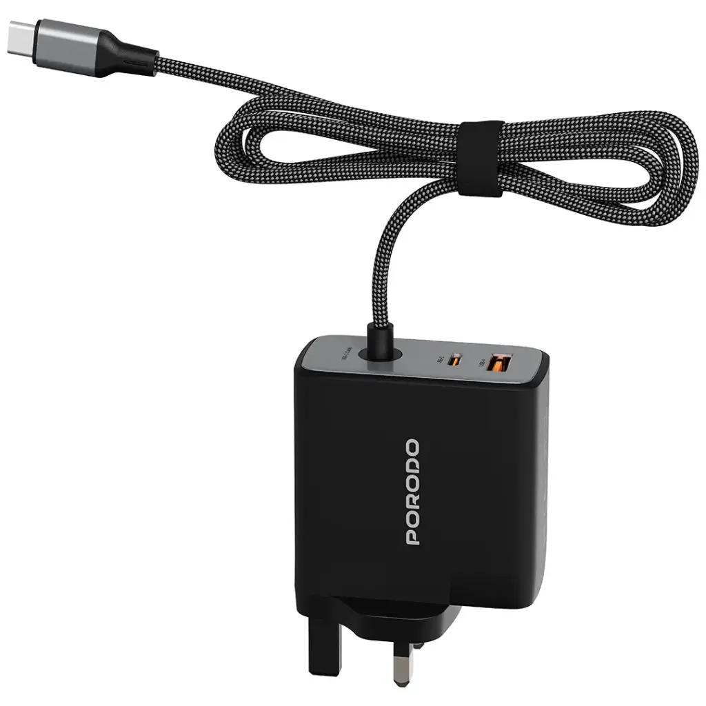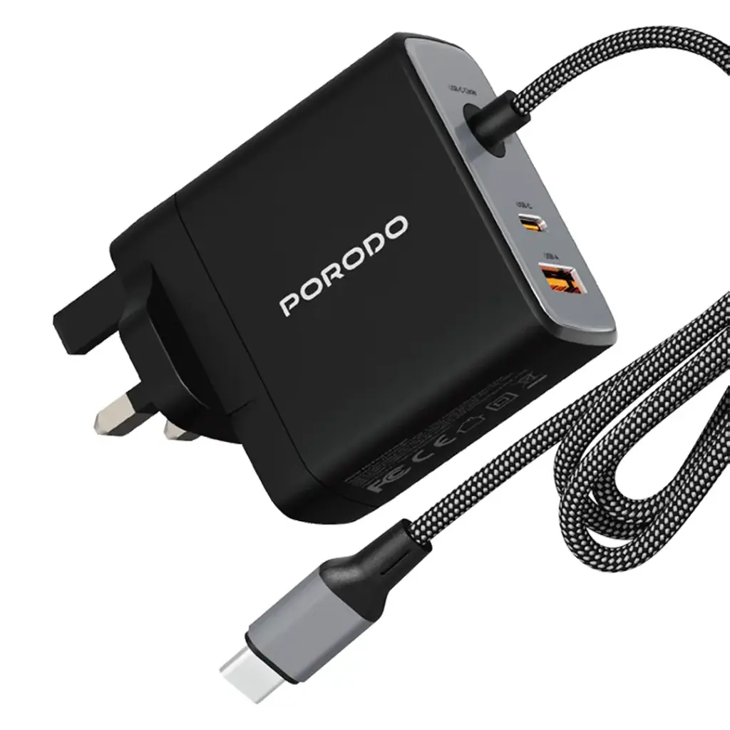 Porodo Zentrix 100W GaN Fast Charger with 1.5m Braided USB-C Cable - Black