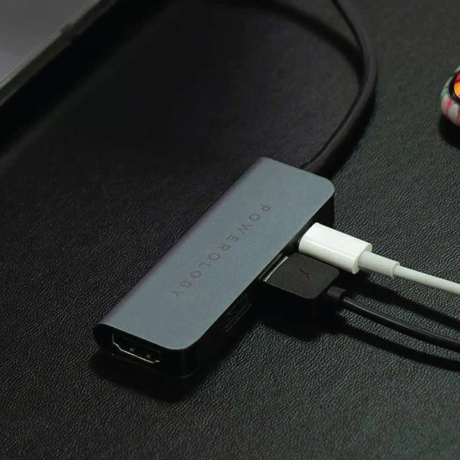 Powerology 4in1 USB-C Hub with HDMI / USB 3.0-Supports 4K Ultra HD-5GBPS SuperSpeed USB Port-60W PD Fast Charging compatible
