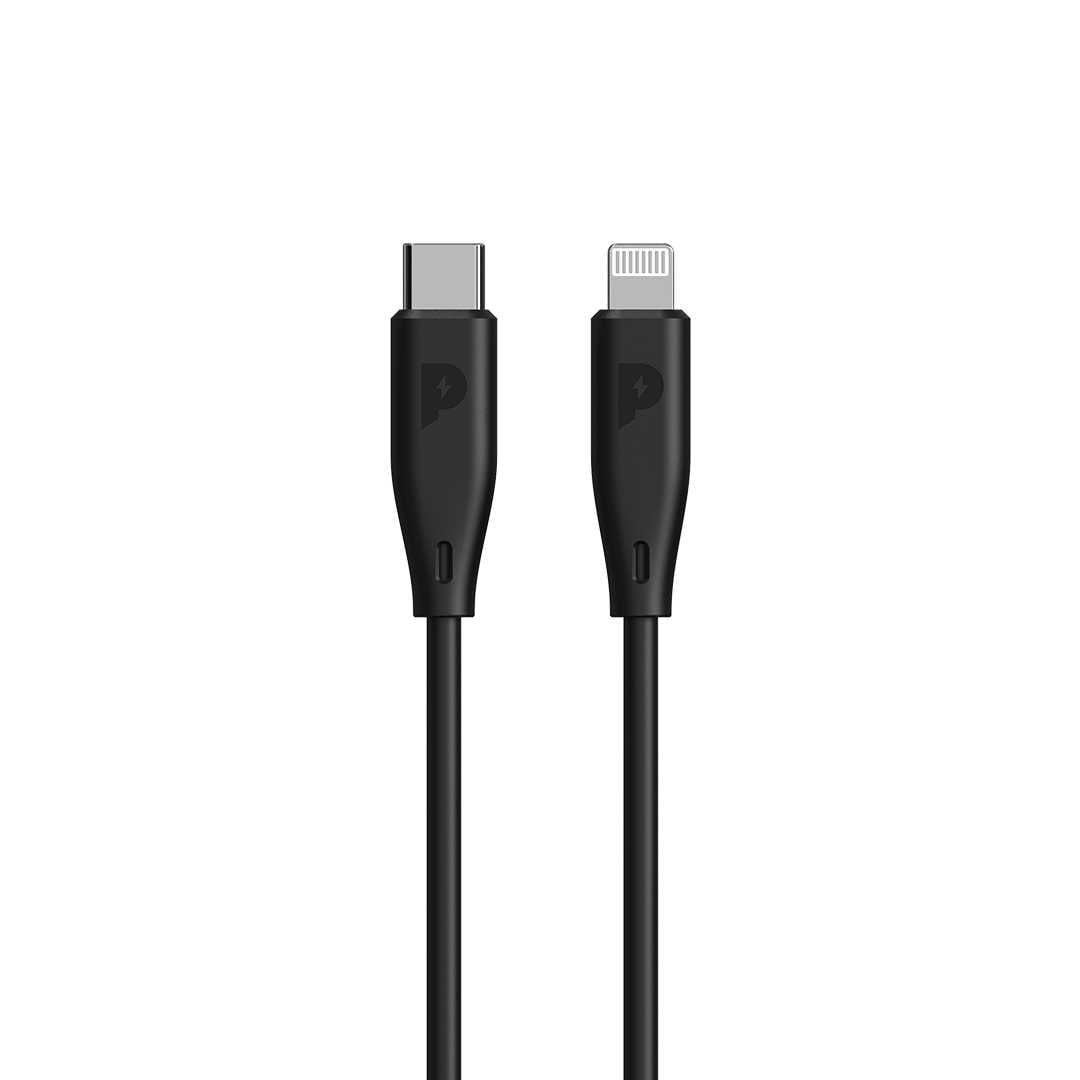 Powerology Dual Port Ultra-Compact Quick GaN Charger USB-A 2.4A + PD 35W with USB-C to Lightning Cable 1.2m/4Ft -Charges your phoBlack
