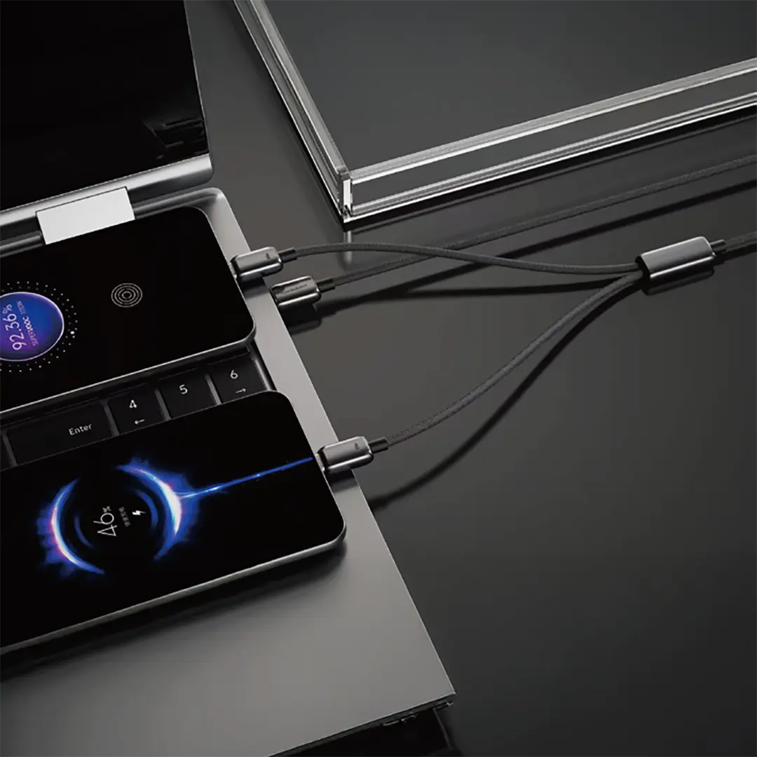 The Powerology Zinco Series 2-IN-1 Dual USB-C cable charges and transfers data at high speed with USB-C devices. 1.2 m long and made of braided nylon and zinc alloy for increased durability, and the 15,000 bend life ensures that it lasts quite some time. It supports fast charging up to 100W, so feel free to fast-charge more than one device. And with E-Marker chip power delivery seemingly done by magic, safe and efficient charging is assured for maximum compatibility with all of your devices. This cable also boasts a 480mbps reliable data transfer rate, which goes a long way in syncing your files between devices. In all other respects, charge your smartphone, tablet, or laptop; your Zinco Series Dual USB-C Cable is the best and lasts long.