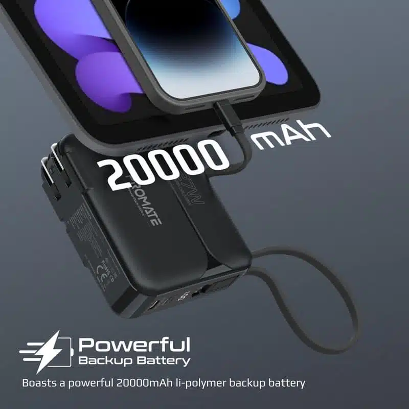 Streamline your on-the-go charging experience with this versatile 20000mAh power bank. There is no need for you to carry extra cables as PowerPack-20Pro features built-in USB-C and Lightning Connector cables. The AC input lets you charge the power bank quickly through the AC socket. You can also recharge with the dedicated USB-C port. PowerPack-20Pro is the ideal charging solution for multiple devices with brilliant portability.