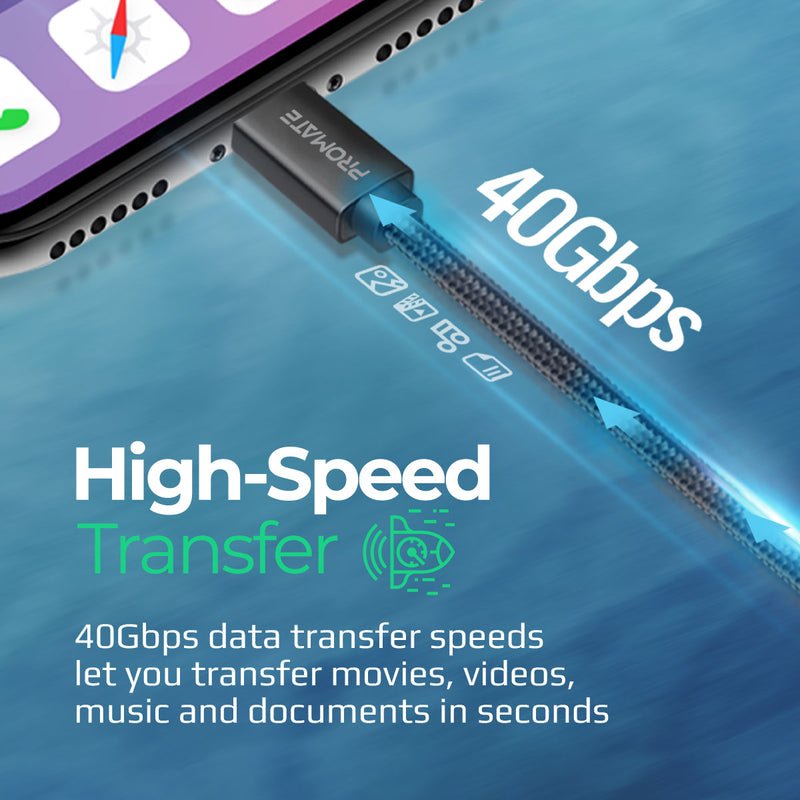 Transfer movies, music and documents in seconds with the PrimeLink-C40, a 40Gbps highly durable cable. The PrimeLink-C40 supports charging outputs of up to 100W and high-resolution displays up to 8K. Super speed future proof USB4 cable.